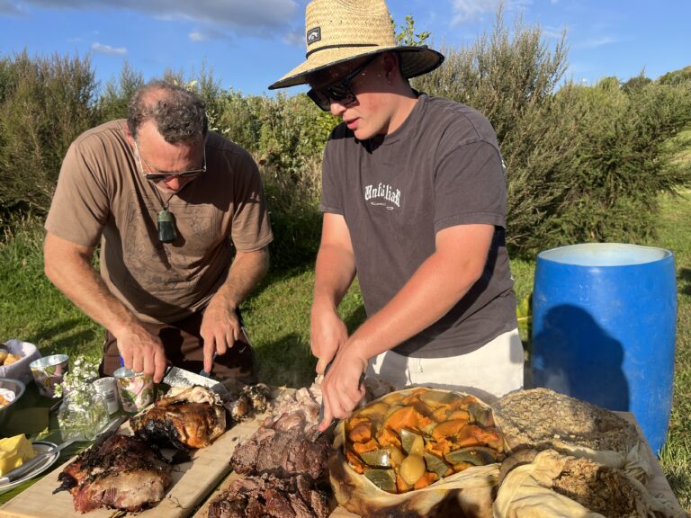 Regional Māori art forms and experiences, waiata/song and participation in preparing and cooking a traditional Māori hangi.